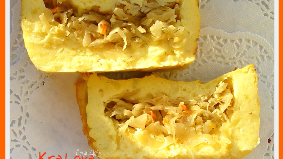 На картофель выложить тушеную капусту. Некоторые к капусте добавляют еще жареный лук, - тоже вкусно, хотя мне больше нравится без него. - Шаг 5
