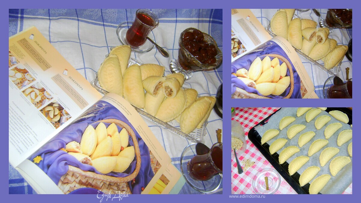 - Шаг 2Делаем маленькие шарики диаметром приблизительно 3 см, Потом раскатываем лепешки диаметром 10 см и высотой 2-3 мм. (оставшуюся часть теста ставим в холодильник, чтоб не «расползлось»).я не ставила, просто быстро все раскатала,и окно на кухне открыла.... Наполняем лепешки начинкой, стараясь не пачкать края. 1 столовой ложки начинки на 1 шекербуру вполне хватит. Закрепляем края придавая форму завитушки. Берем наггаш – специальные щипчики,для нанесения узора и наносим диагональные линии. Второй ряд – такие же линии, только уже в другую сторону, это как бы похоже на паркет-«разбежку».