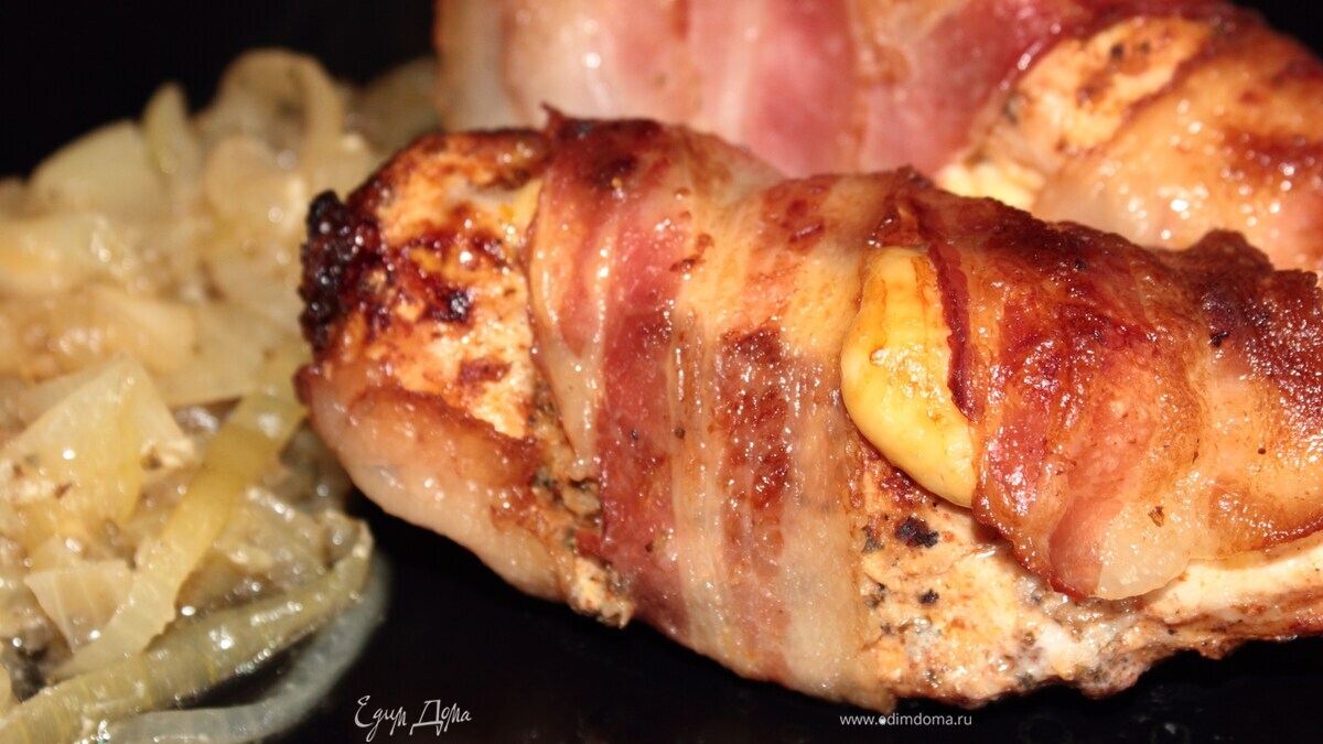 Заварачиваем в бекон и укладываем на порезанный полукольцами лук. - Шаг 6