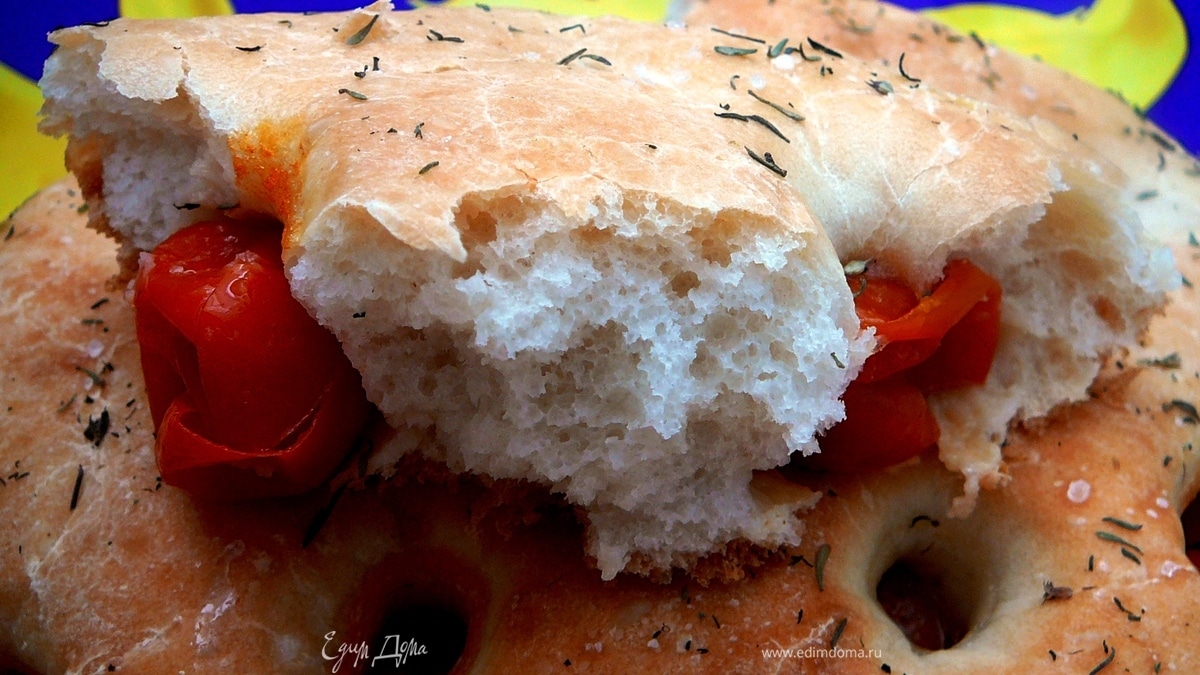 - Шаг 3Сделать из теста лепешку и выложить на нее помидоры, дать немного подойти и еще раз притопить помидоры.