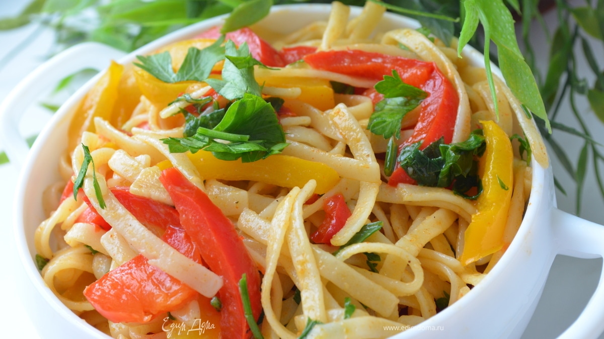 Очень легкое в приготовлении блюдо, в последнее время не могу без болгарского перца! А в пасте он уж больно хорош. И глаз радуют такие яркие цвета. Рецепт взяла из журнала Лиза Приятного аппетита.