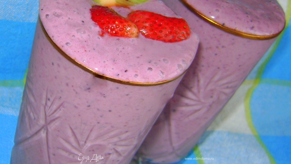 сначало пюрировала в блендере ягоды+банан,затем добавила мороженное и мед,снова взбила и молоко...коктейль готов))по желанию добавить лед