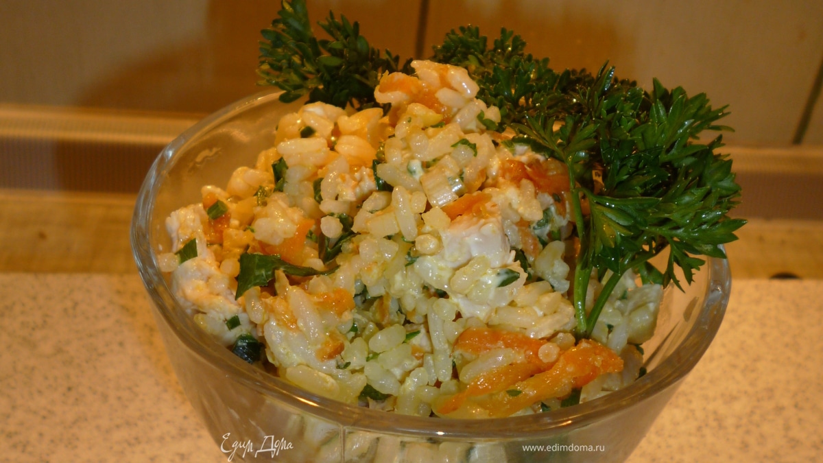 Теплый салат с рисом