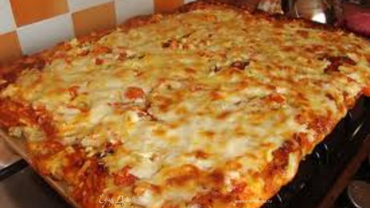- Шаг 2Положить помидоры, сосиски, потереть сыр, поставить в духовку и выпекать до готовности.