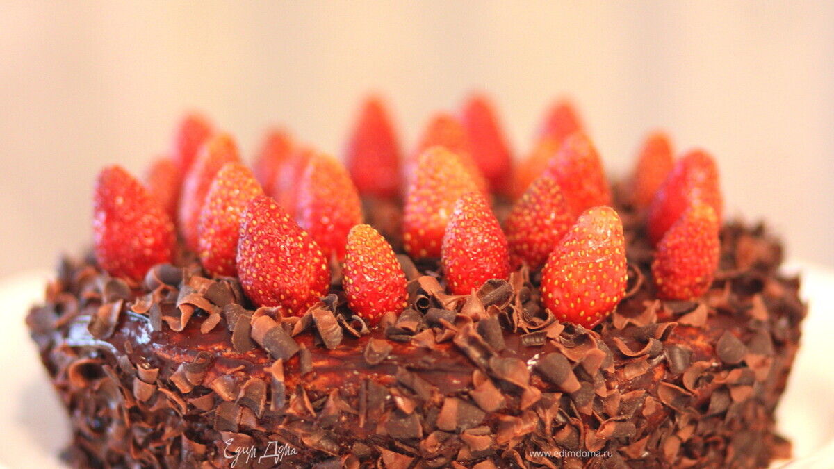 Шоколадный торт с клубникой