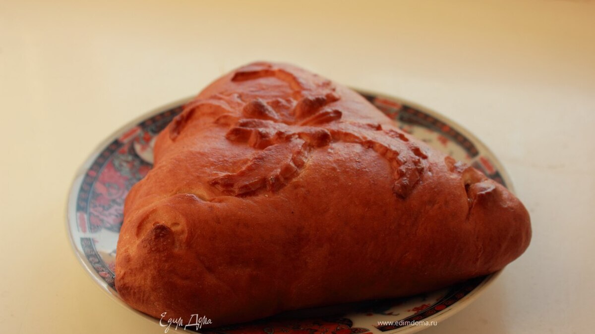 Подошедшее тесто обмять,разделить на две части.И тут зависит какой формы Вы хотите кулебяку..круглую,квадратную,треугольничком или прямоугольную))Раскатываем тесто, кладём начинку и закрываем вторым пластом теста.Края хорошо слепляем.По краям делаем небольшие надрезы,смазываем яйцом и в духовку разогретую до 180С на 50 -60 минут. Приятного аппетита))) у меня из этого количества получилось три треугольных кулебяки))