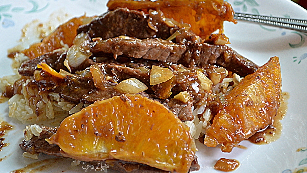 Говядина с апельсиновыми дольками