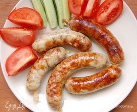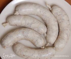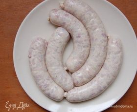Наполнить кишку получившимся фаршем. Старайтесь при наполнении выпускать воздух из колбасок. Из-за того что фарш жидкий, колбаски получаются мягкими.