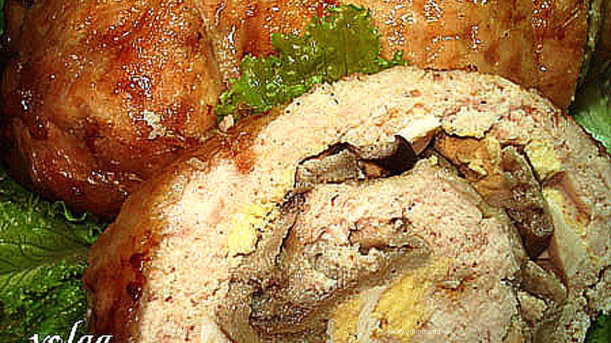 Куриный рулет, фаршированный яйцами и грибами