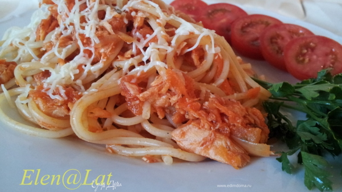 Паста с семгой в томатном соусе