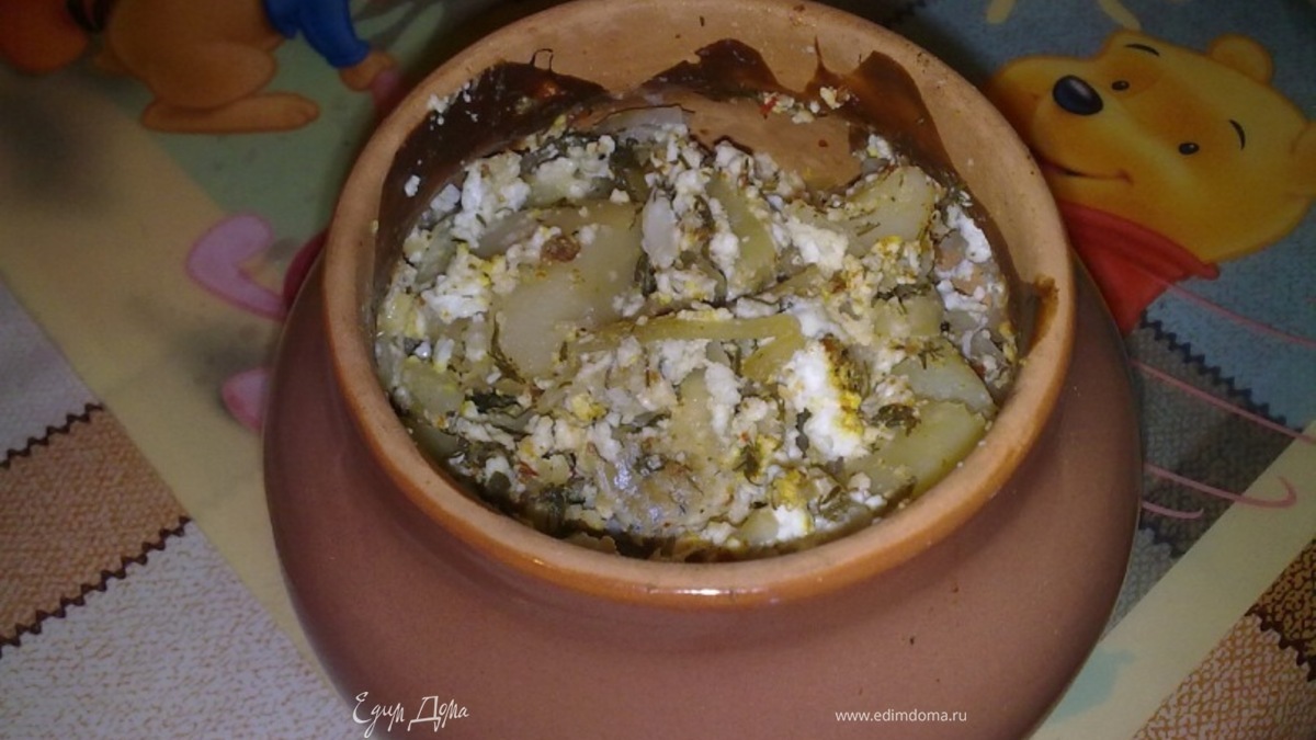 На дно горшочка выложить картофель (500г), нарезанный пластиками, посолить;