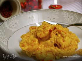 - Шаг 1Креветки почистить, кальмары нарезать полосочками, обжарить на оливковом масле 2-3 минуты, положить порезанные зубчики чеснока, 1 тертую морковку. Рис отварить в отдельной кастрюле в воде до полуготовности. На морепродукты высыпать отварной рис и залить бульоном. Посолить, посыпать приправой для плова. Тушить до испарения жидкости и готовности риса.