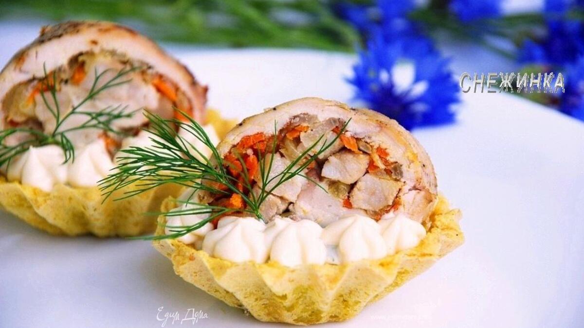 «корзиночки» со сливочно-сырным кремом и куриным рулетиком
