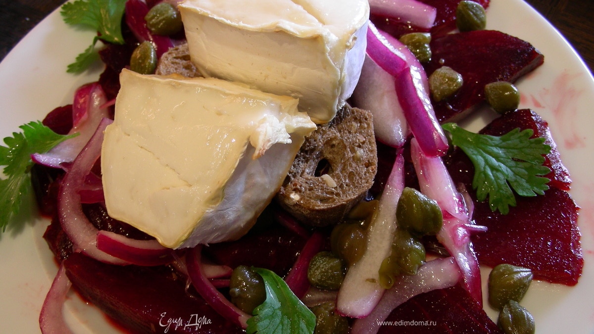 Закуска из запеченной свеклы с каперсами, теплым козьим сыром и тостами
