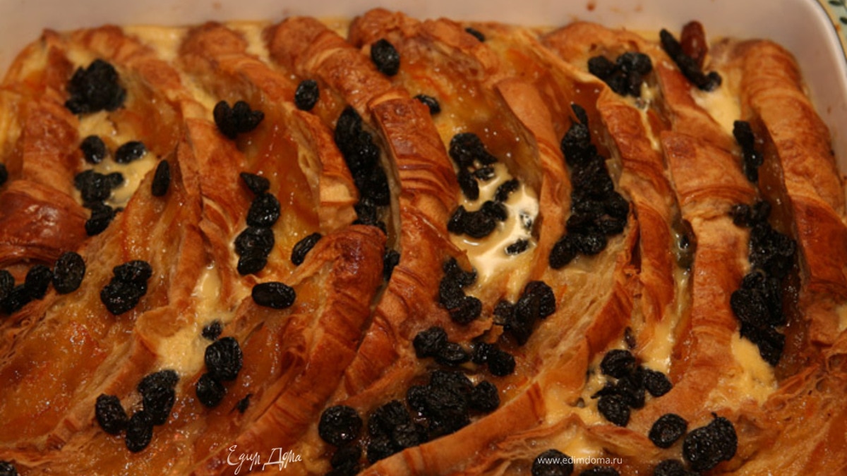 Мой английский пудинг на самом деле мог бы быть назван «Пудинг французский», и в этом было бы больше смысла. Что такое английский пудинг — bread&butter, хлеб и масло. А тут в составе вместо хлеба — круассаны, а вместо масла — кондитерский крем, который мы, естественно, готовим дома. Но, честно говоря, готовила для меня его моя английская подруга в 6 утра после дискотеки, вот поэтому он у меня английский.