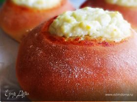 Булочки получились слегка хрустящими, как печенье снаружи и рыхлыми, воздушным внутри. Большой плюс в том, что в качестве начинки можно взять все, что найдется в холодильнике.