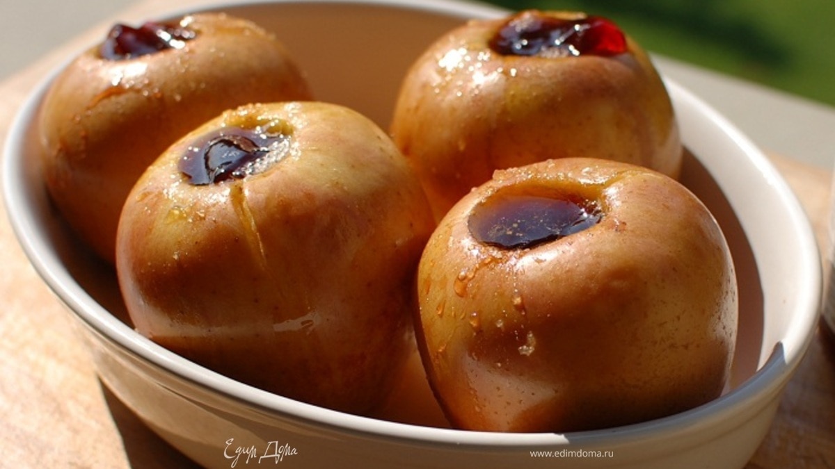 Свежие яблоки более сладкие, зато запеченные — более нежные, что лучше для малышей. Вместо меда можно взять кленовый сироп, а вместо яблочного сока — просто воду.