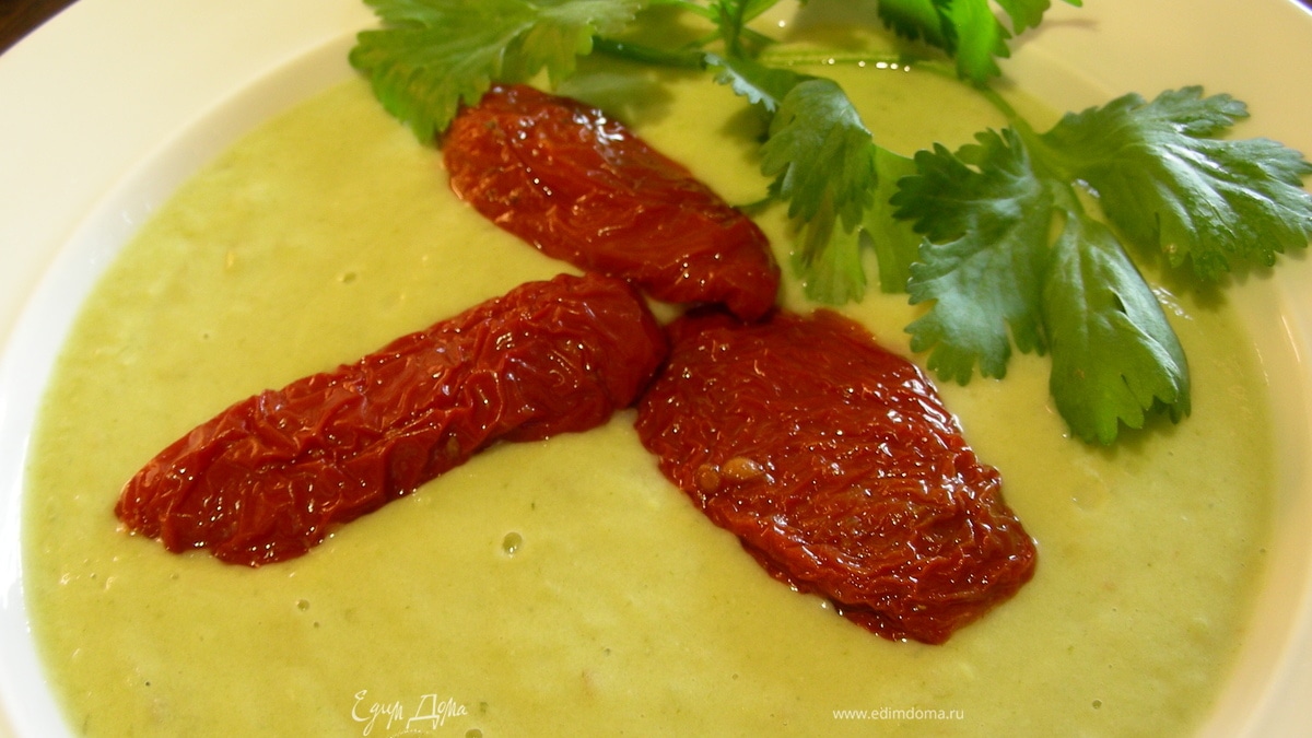 Суп-пюре из авокадо с кинзой и вялеными томатами