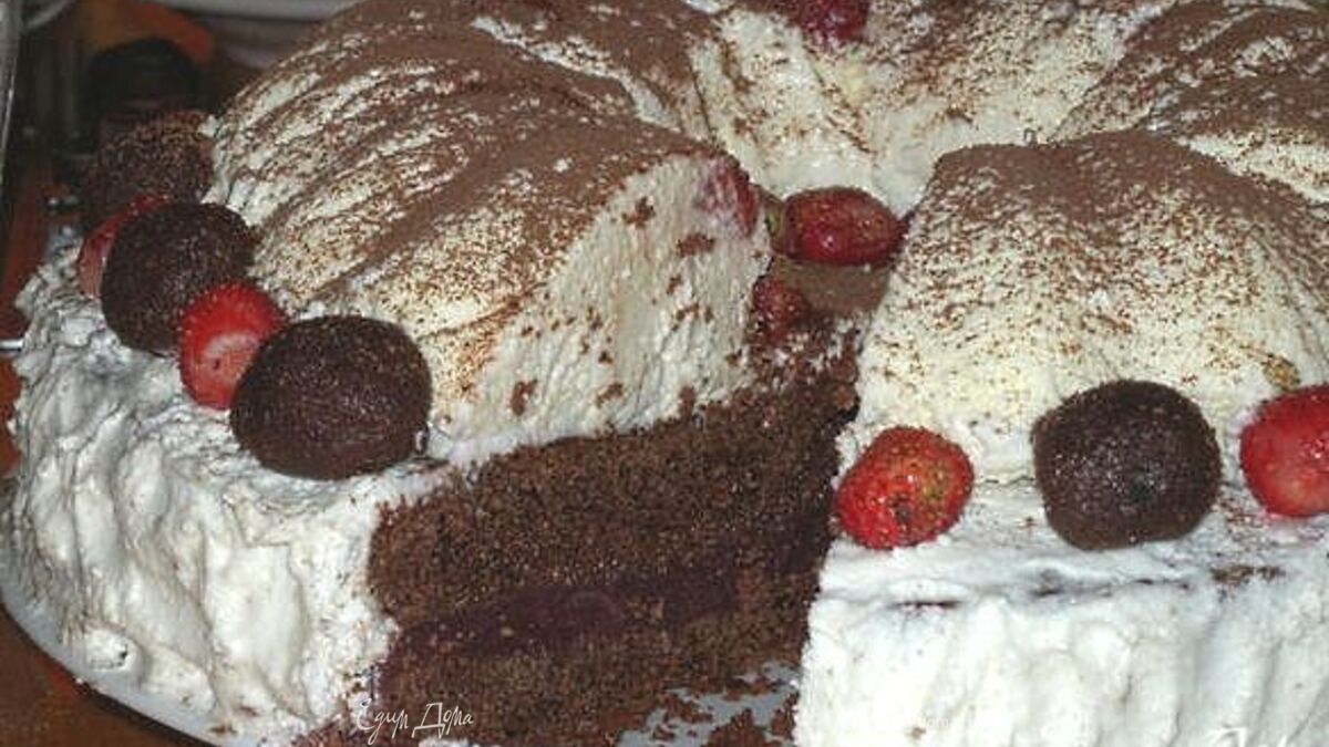 Это мой подарок вам, мои дорогие любители кулинарии! Потому что он сделан из ваших рецептов, моими руками и моей фантазией, торт получился безумно вкусным, он был приготовлен на ДР мужа и когда незванный гость начал слишком активно работать ложкой, муж просто взял и унес его, такую вкуснятину на съедание незванным гостям он, огромный любитель сладкого, оставить не мог. Здесь нашли в себе сочетание полюбившийся мне брауни, из всего многообразия рецептов я остановилась на рецепте Анастасии В, полноценный объем для формы 28 см, реализовала идею с Тирамиссу от Mariana, добавила желе из клубники и украшения! Угощайтесь, мои дорогие, это для ВАС в знак моей благодарности всем, с кем мне посчастливилось познакомиться, с кем я веду долгие беседы и получаю огромное удовольствие от общения! А может кто-то захочет повторить - это совсем не сложно, но очень вкусно!!!