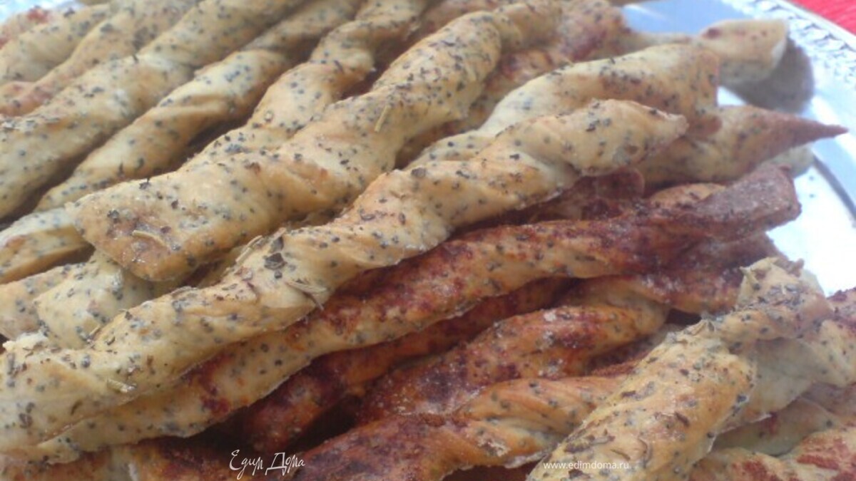 В последнее время меня очень заинтересовала несладкая выпечка: пироги, какие-то булочки, печенье. Недавно нашла рецепт очень простых, но ооочень вкусных крекеров!)) Мне и моей семье они пришлись по вкусу. Делала их и в форме крекеров,и в форме хлебных палочек(палочки понравились всем гораздо больше). Поэтому на следующий день я приготовила тройную порцию палочек!)) Внутри они очень хрустящие, маковые, с приятным запахом тимьяна и освежающим вкусом. Количество ингредиентов сразу увеличила в 2 раза, т.к. мне показалось,что крекеров получится очень мало)