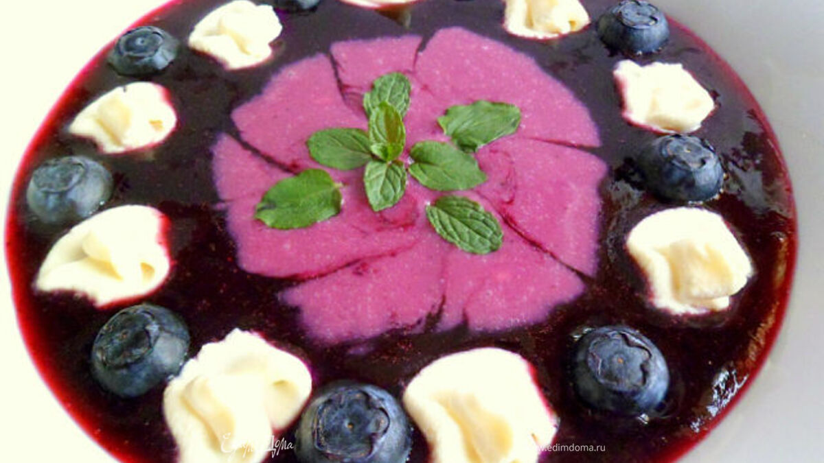 Черничный супчик с ягодами, мятой и взбитыми сливками