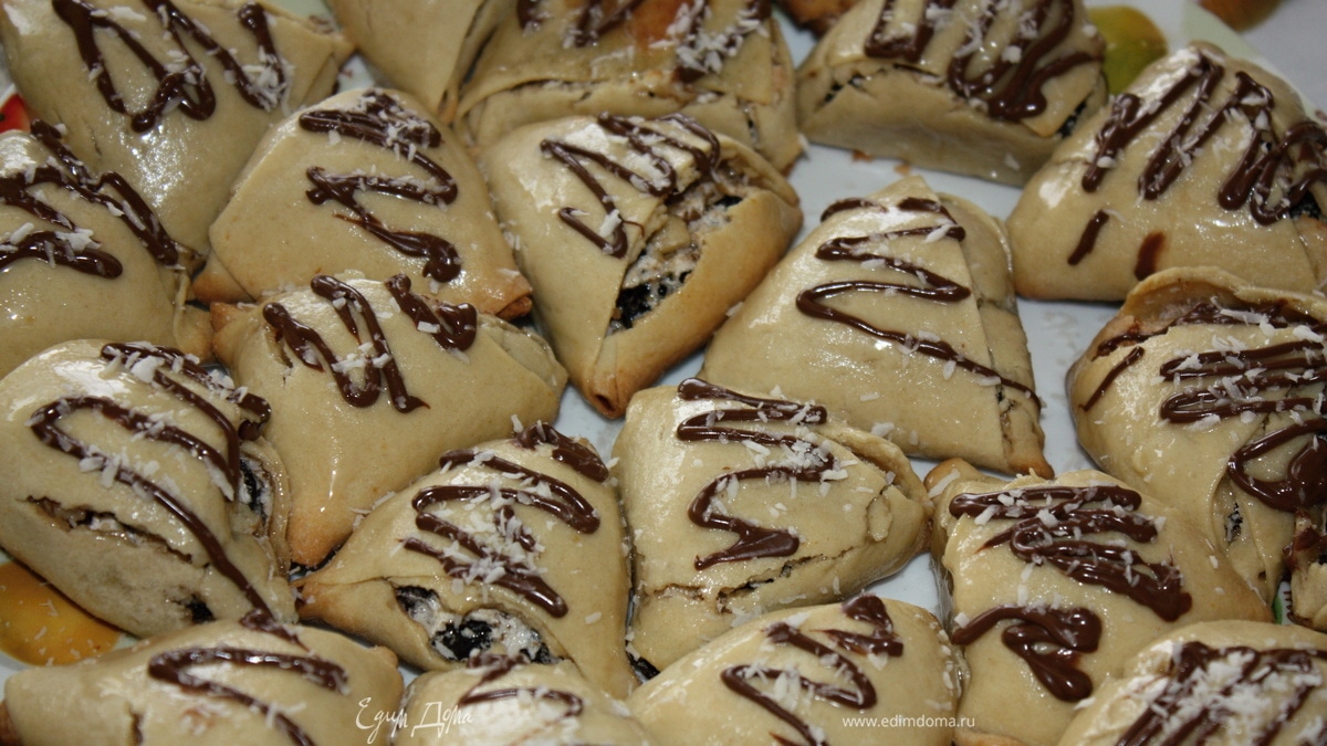 Слегка остывшие печенюшки глазировать сгущенкой, украсить шоколадной пастой и кокосовой крошкой. Приятного аппетита!