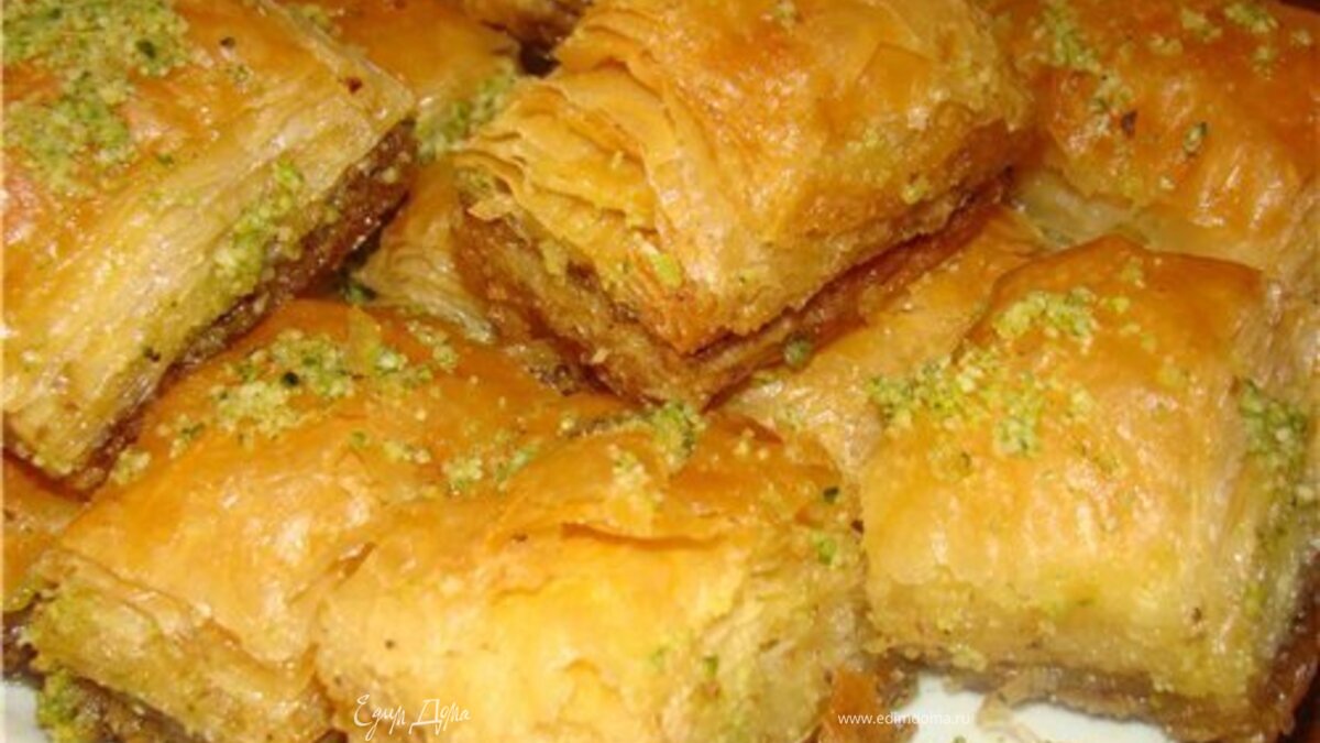 - Шаг 1Дрожжи растворить в молоке,соединить с солью,топлёным маслом,яйцо1,муку и замесить крутое тесто.Разделить на несколько частей,раскатать как можно тоньше.Выложить на противень пласт смазать его маслом и посыпать орехами смешанными с сахаром.Так проделать со всеми слоями.Порезать на порционные куски,смазать желтком смешанным с ванилью и шафраном,и поставить запекать.При180-200С минут-40.За 15 минут до готовности глазируем мёдом или сиропом.Посыпаем готовые измельчёнными фисташками или орехами.