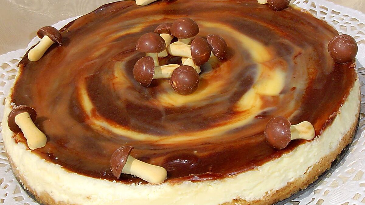 Сливочную основу выкладываем в форму поверх печенья и выравнимаем поверхность. Выпекаем при 180 гр. 10-15 минут, этого времени достаточно, чтобы схватилась основа. Даем ему остыть в форме при комнатной температуре, а затем отправляем в холодильник на 12 часов!!! Именно на 12 часов, не меньше, иначе консистенция будет другой, да и вкус тоже. - Шаг 7