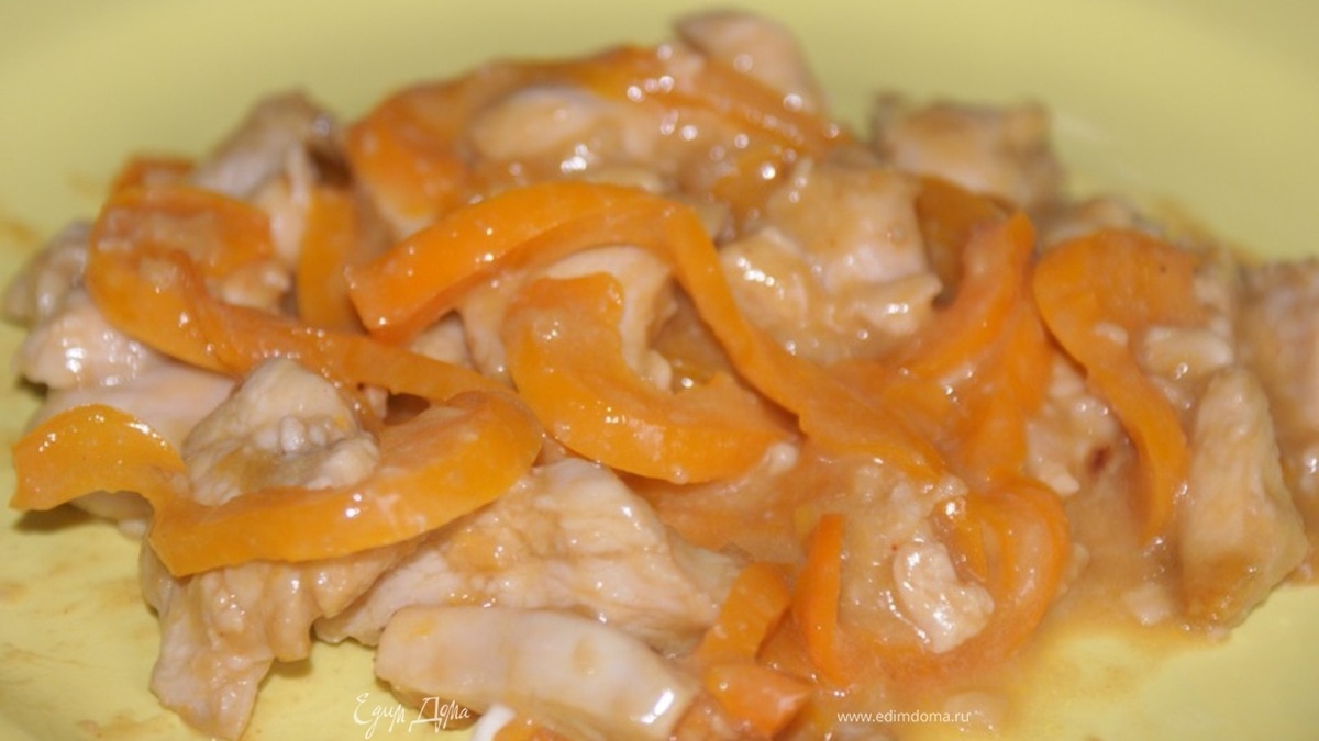 - Шаг 6Добавить перец, миндаль (по желанию) и остатки маринада, перемешать и обжарить еще 2-3 минуты.