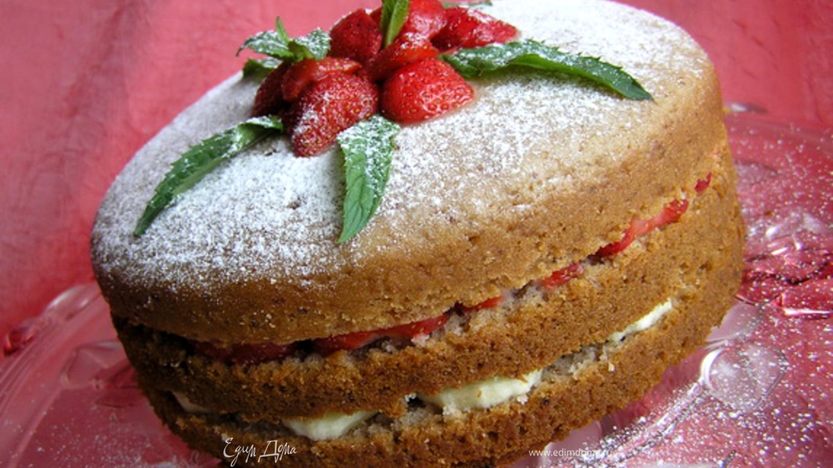 За основу торта я взяла рецепт клубничных кексов ссылка на рецепт Бисквит получается нежным, рыхлым и влажным, поэтому не нуждается в креме. Достаточно его пропитать сиропом и переложить свежими ягодами или фруктами. Получается очень вкусный, легкий и к тому же совершенно постный торт! Угощайтесь, приятных Вам выходных ;))