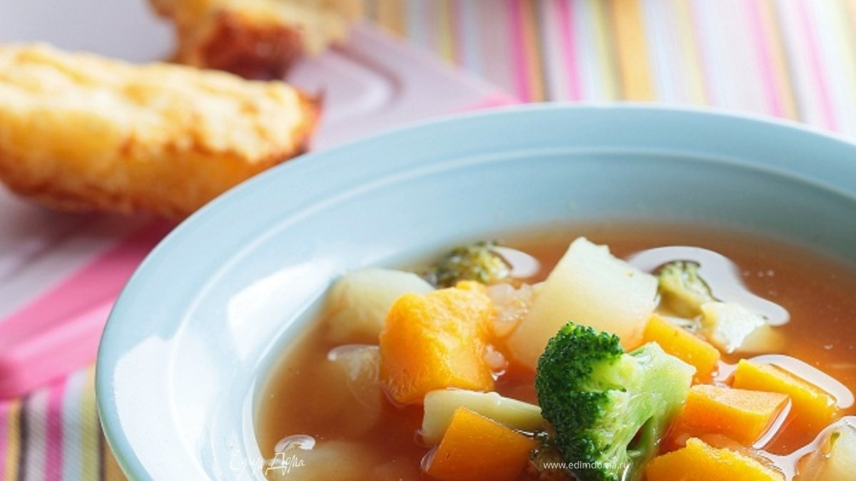 Вместо тыквы подойдет батат. Детям постарше этот суп можно подать со сметаной или сливками, и сделать гренки: намазать кусочки хлеба сливочным маслом, присыпать тертым сыром и быстренько под гриль! Для взрослых вместо молока хорошо добавить в суп 1 ст. ложку томатной пасты, разведенной небольшим количеством бульона, посолить и поперчить, посыпать рубленой петрушкой.