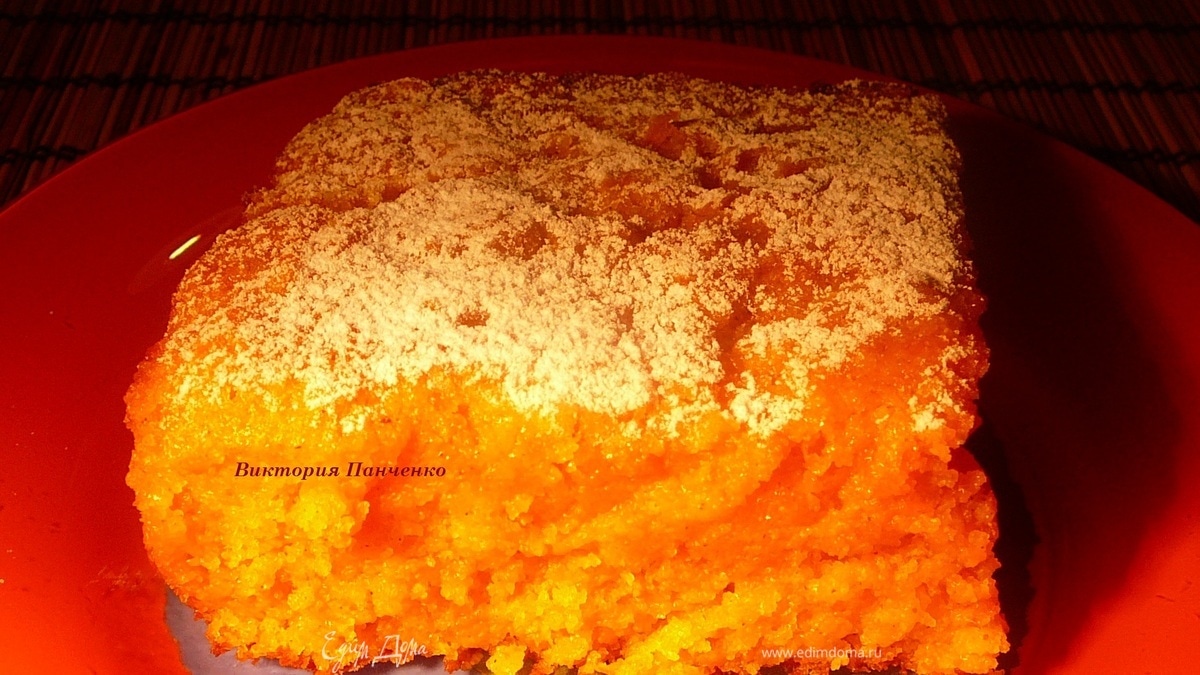 - Шаг 3Пока пирог выпекается, сварить сироп из воды, сока, сахара и пряностей. Когда пирог будет готов, не давая ему остыть, залить сиропом. Через полчаса манник впитает весь сироп и мы получим вкуснейший нежный пирог...