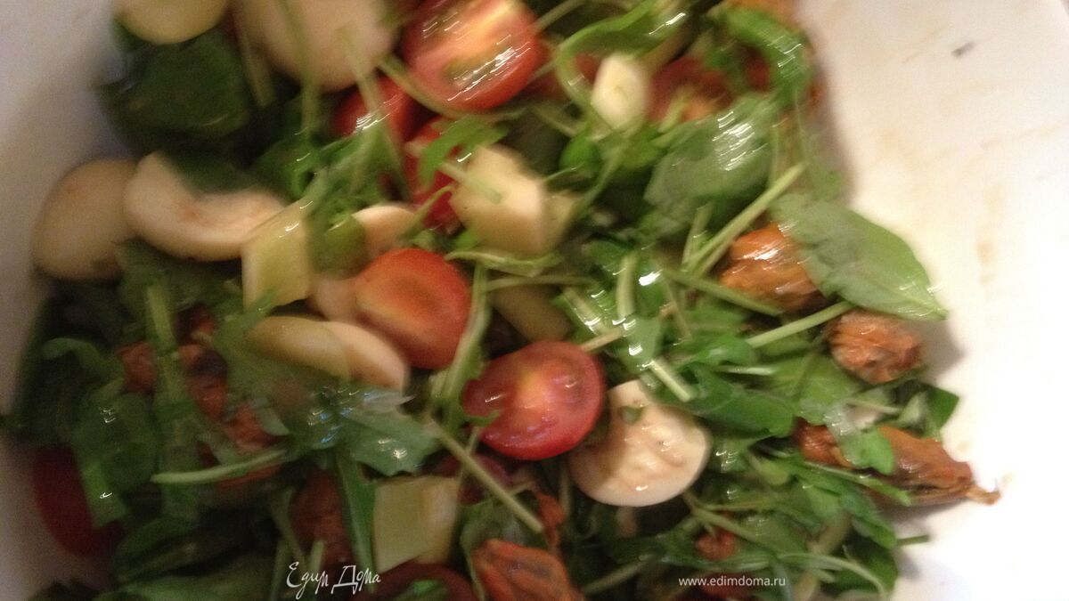Руколу промыть, встряхнуть от воды или промокнуть полотенцем, порезать, отправить в салатницу. - Шаг 6
