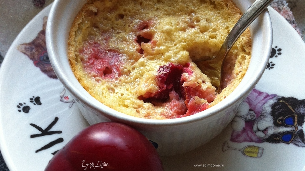 7. Формочки смажьте сливочным маслом. Я использовала порционные формочки. В каждую выложить меньше половины риса, затем выложите сливы, порезанные на четвертинки, а потом снова выложить слой риса (небольшой).