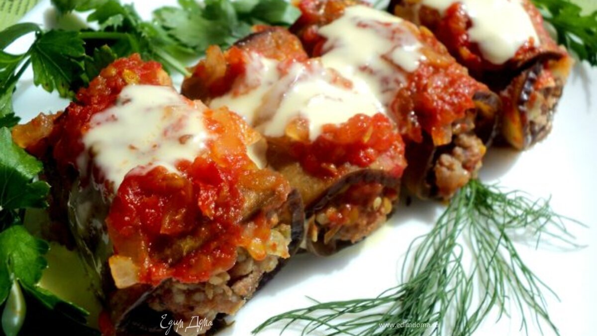 Рулетики из баклажан с мясом