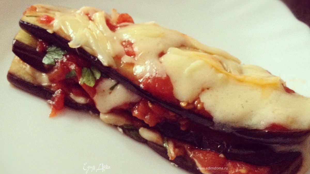 Начинаем конструировать. Баклажан, томаты, петрушка, сыр. Эту последовательность повторяем 3 раза. Верхний слой сыра. Запекаем в духовке 15 минут. Вот и всё, приятного Вам аппетита!=)