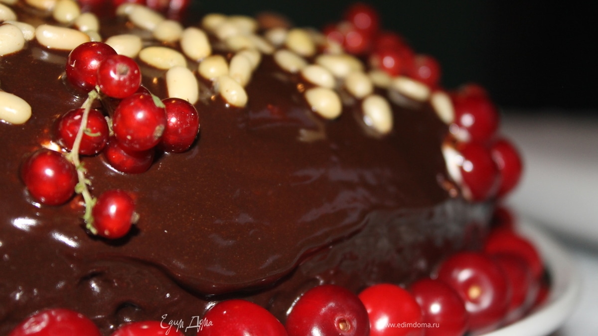 - Шаг 8Полить тортик глазурью. Готово! По желанию можно украсить торт гранатами или другими фруктами и орешками. Приятного аппетита!!!