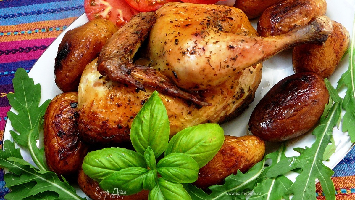 - курица запеченная, курица с картошкой
