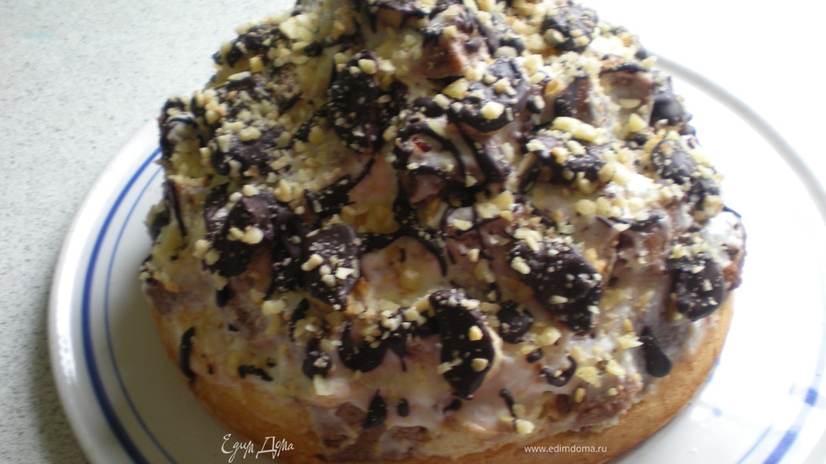 Украсить торт и посыпать орешками.
