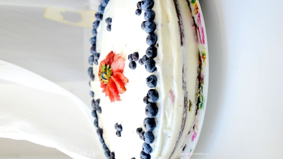 Накрыть третьим коржом, смазать кремом и украсить ягодой торт. - Шаг 10