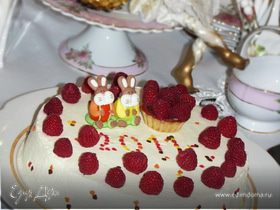 Смазать оставшимся кремом бока торта. Поставить в холодильник торт на пару часов.