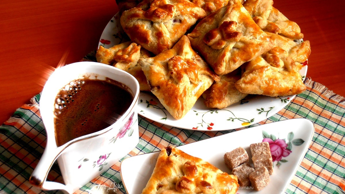 На самом деле это слойки с яблоками!.. Рецепт с таким названием привезён давным-давно из старинного русского города Вологда. Они такие нежные и вкусные, что даже рецепт мне давали уже увеличенный в 2 раза!Так я и делала двойную порцию, когда детки были маленькие: напечёшь горку пирожков и пару-тройку дней нет забот,что подать к чаю! Ниже привожу рецептуру без удваивания...