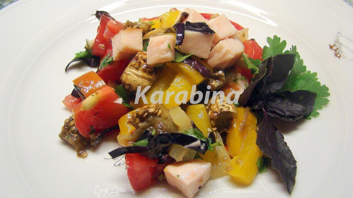 Салат с запеченными баклажанами и перцами