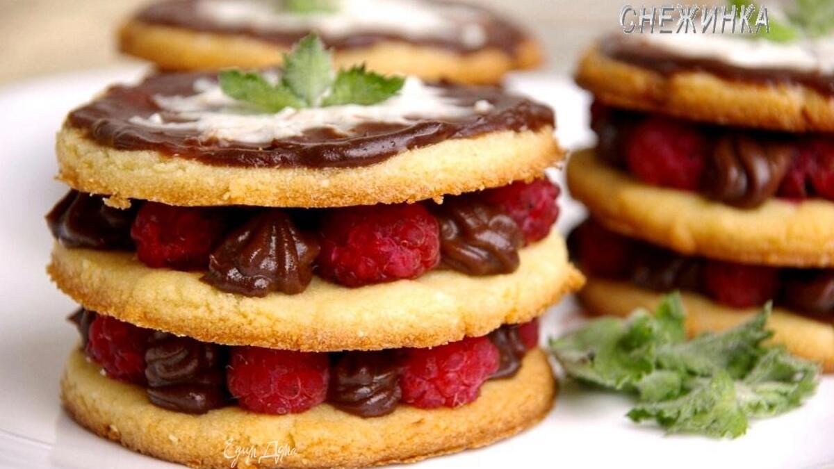 Многослойное пирожное изумительно сочетает в себе миндальные коржи, шоколадный крем и ароматные ягоды малины! Вкусное миндальное печенье и шоколадный крем сами по себе прекрасны, а вместе с малиной творят вкусовые чудеса! Очень мне нравится то, что духовка работает всего 10-15 минут, а результат Вас особенно порадует. Если дать пирожному немного постоять в холодильнике, оно пропитывается кремом и становится похоже на мини-тортик. В общем, это надо пробовать, угощайтесь!