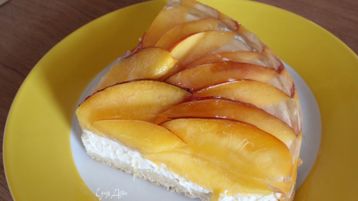 - Шаг 3После того как наш чизкейк-запеканка готов оставляем охлаждать тем временем приготовим заливку для торта следуя инструкции на упаковке. Сверху охлажденного чизкейка выкладываем порезанный ломтиками нектарин и покрываем заливкой и ставим в холодильник для застывания. Я ставила на ночь, а на утро наслаждались такой вкусняшкой на завтрак!