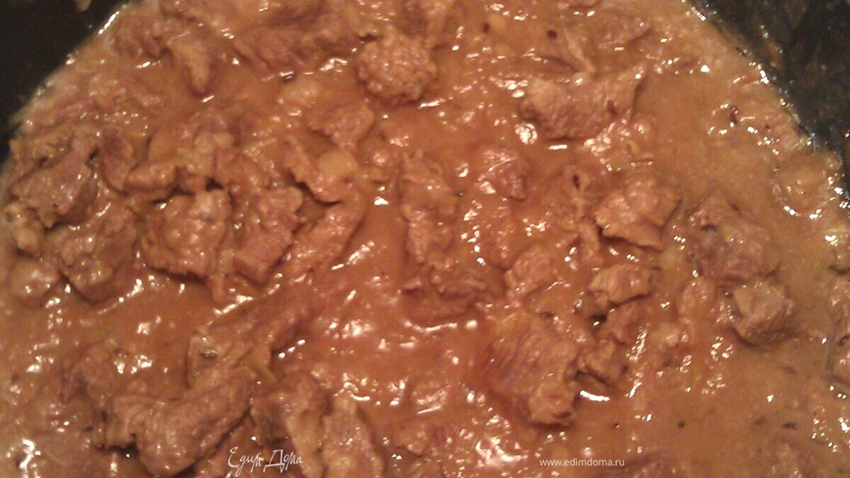 Добавить к мясо натертый на мелкой терке черный хлеб и оставшееся пиво. Тушить еще 20 минут. Вот и все: мясо готово.