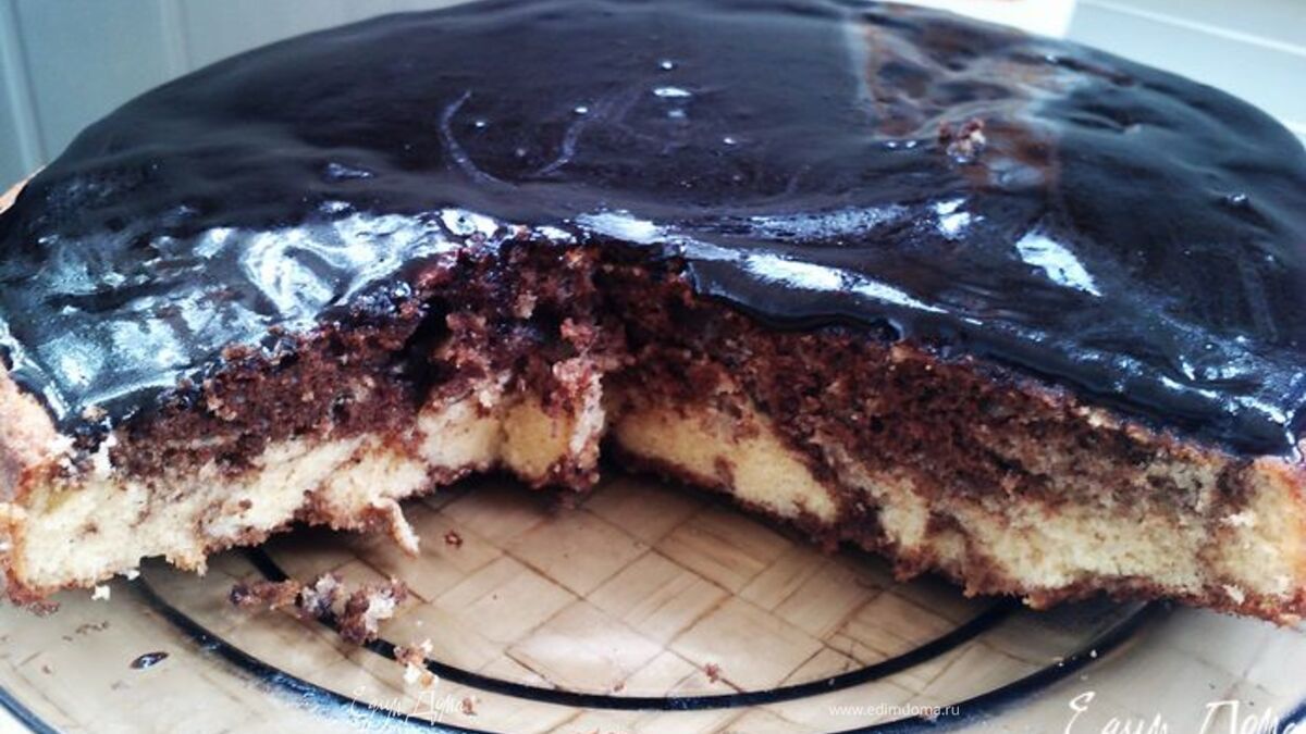 Ставим в разогретую до 180 С духовку на 45-50 минут. Сверху полить шоколадной глазурью.