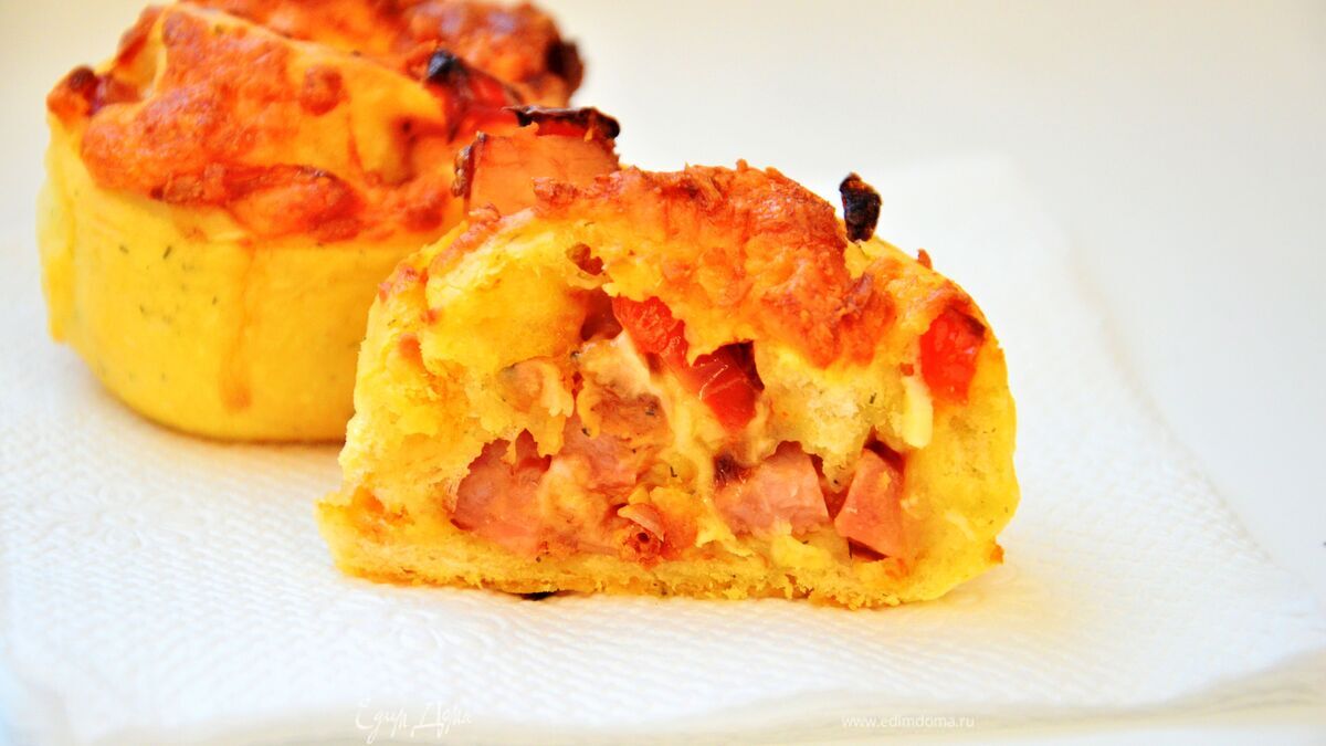 Свернуть в рулет и разрезать на кусочки,в длину около 7-8см.Защипать с одной стороны тесто,чтоб начинка не выпала.Поставить на противень застеленный пергаментом защипанной стороной вниз,слегка придавить верх.Присыпать оставшимся сыром. - Шаг 7