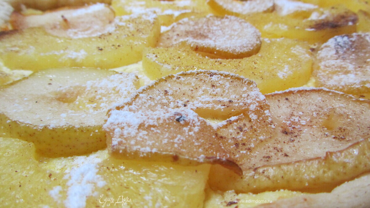 По поверхности творога разложить половинки ананасов и груши. Посыпать ванильным сахаром, смешанным с сахарным песком, и корицей по вкусу. Духовку разогреваем до 180 градусов и выпекаем пирог 30 мин. Сразу не вынимаем из формы, даём остыть.