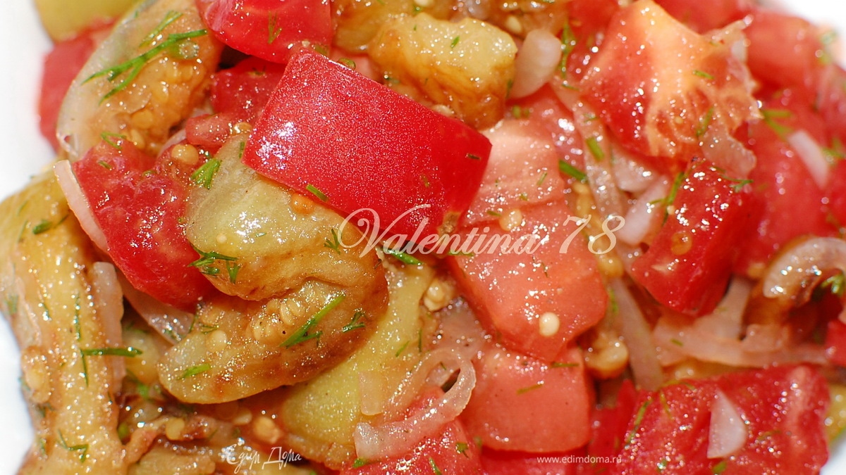 Салат из жареных баклажанов со свежими помидорами